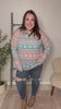 Haptics Teal/Red/White Snowflake Print Brushed Hacci Hoodie Pullover