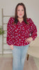 Romantic and effortlessly feminine, this floral blouse brings the perfect blend of charm and sophistication. The rich burgundy background makes the soft blue florals pop, while the double ribbon-tie neckline adds a sweet, elegant touch. Designed with breezy bubble sleeves and a relaxed silhouette, this woven top drapes beautifully without feeling heavy.