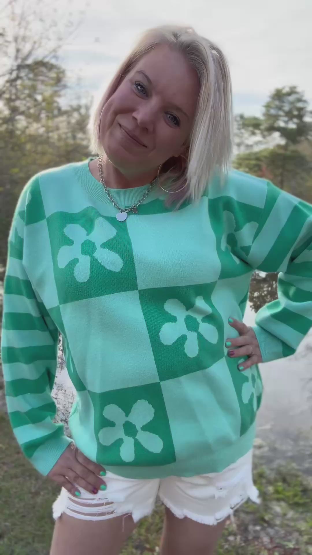 BiBi I Want to Break Free Floral Color Block Medium Weight Pullover Sweater