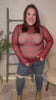 Haptics Red High Neck Line Plaid Mesh Semi Sheer Top