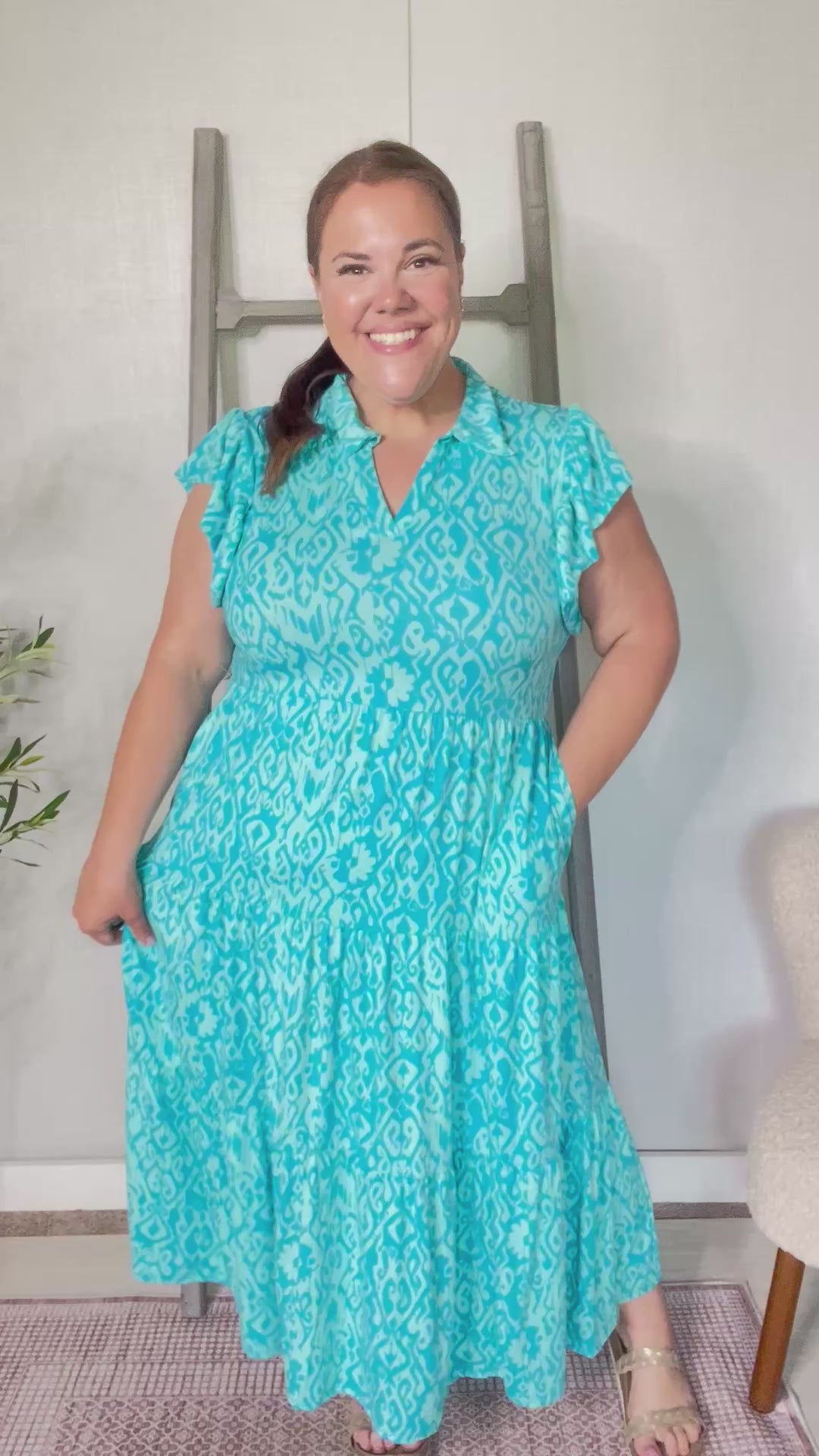 Discover the perfect summer staple with this stunning Haptics Boho Print Flutter Sleeve Fit & Flare Dress. Featuring a beautiful Ikat bohemian print, folded flutter sleeves, and a collar notch neck, this midi dress offers both style and comfort. The fit and flare silhouette and tiered design make this dress a must-have for any fashion-forward individual.